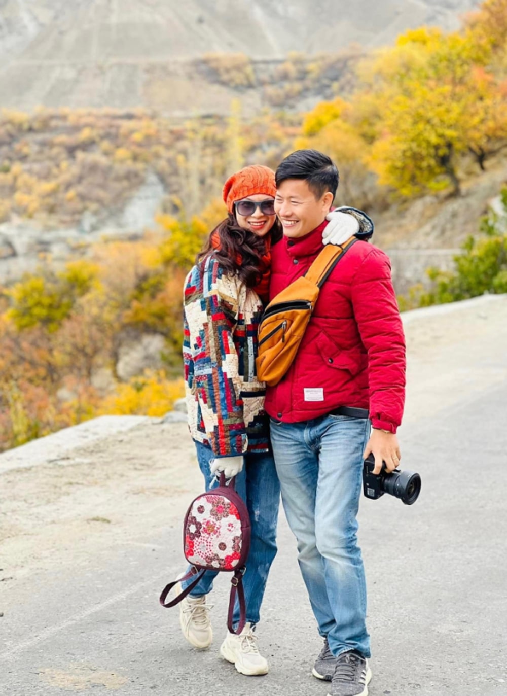 Vợ chồng chị Lan Hương trong một chuyến du lịch - Ảnh do nhân vật cung cấp