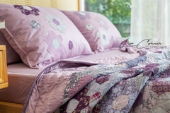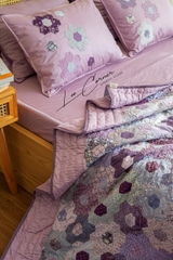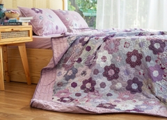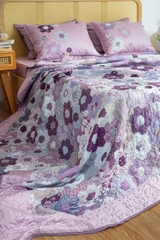 Chăn ghép vải lục giác cạnh 3cm, tím tro, chần tay của nhà LEE CORNER được hình thành từ các mảnh vải tưởng chừng như không liên quan đến nhau thành một mảng hài hòa về màu sắc và bố cục.