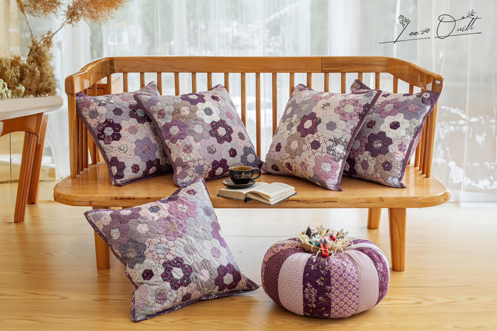 Chăn ghép vải lục giác cạnh 3cm, chần tay