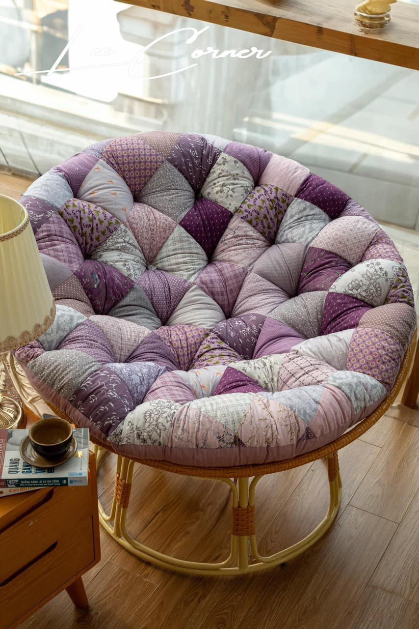 Đệm ghế Papasan ghép tone tím, một sản phẩm chỉ có ở nhà Lee Corner